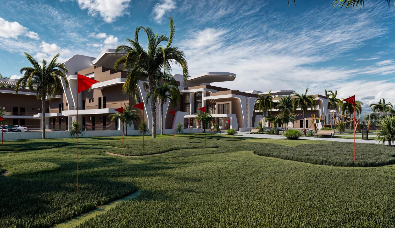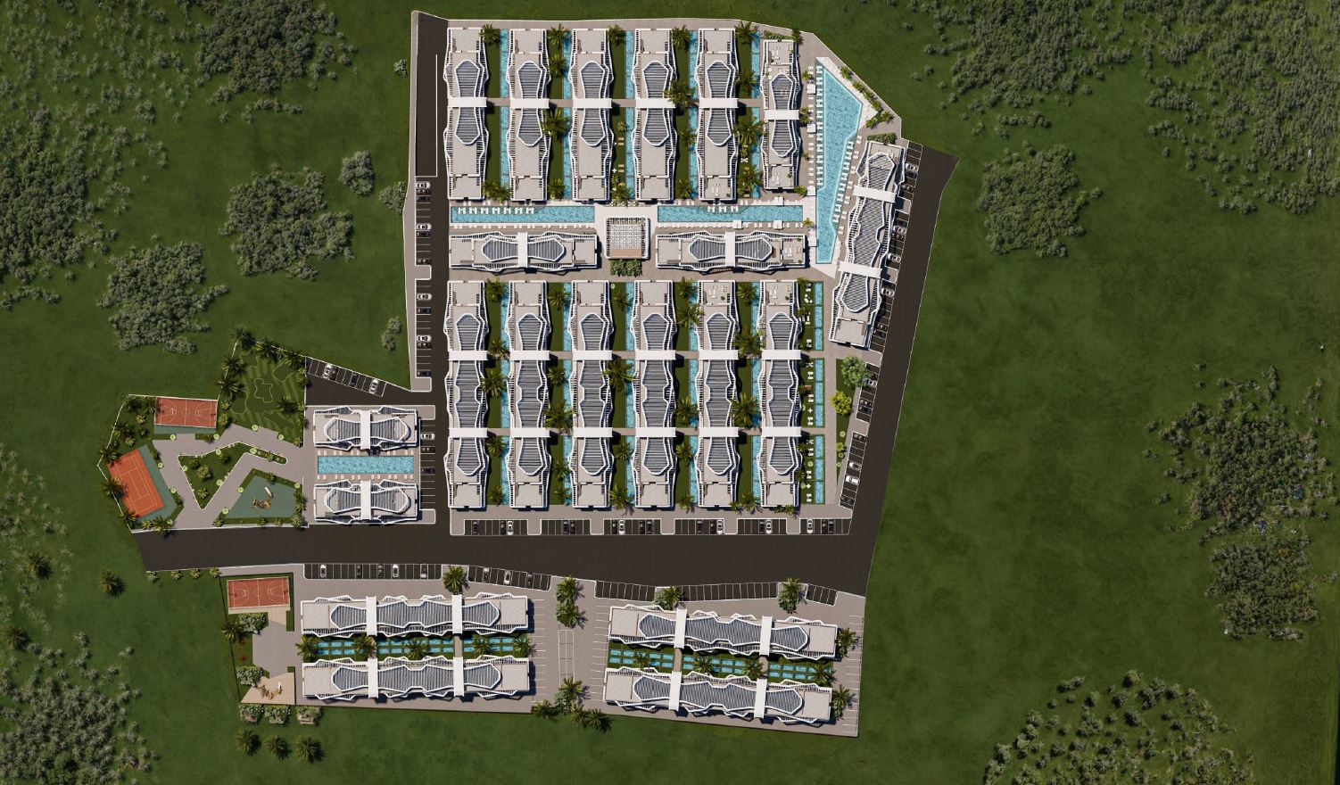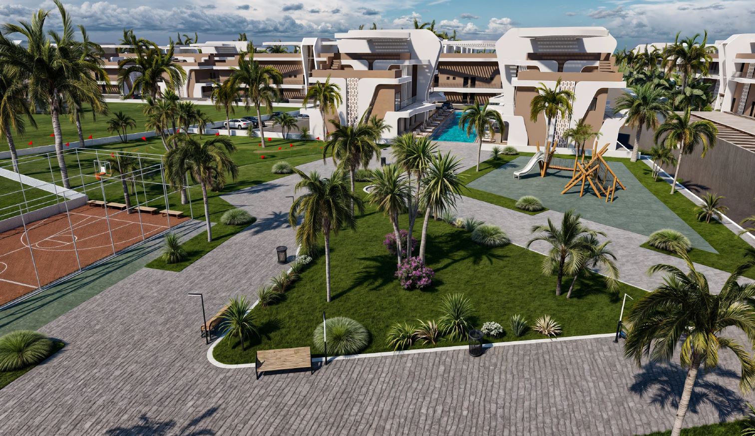 - Boiska sportowe: mini golf, koszykówka, siatkówka, tenis